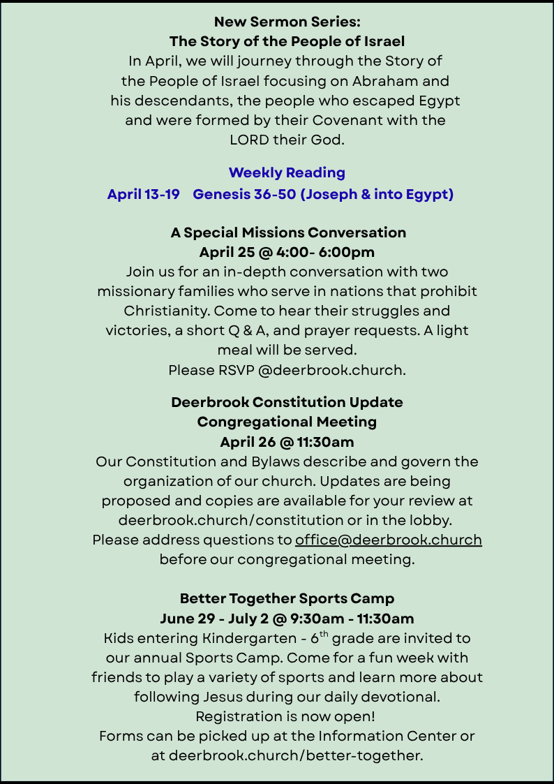 We are starting a new sermon series discussing the Story of the People of Israel.