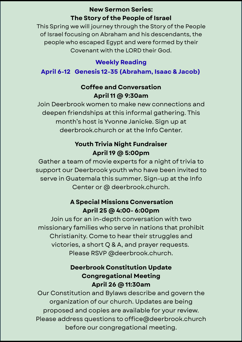 Please join us on Sunday in person or online. We will celebrate Communion on our “Family Sunday” where the school children remain with us. We are discussing resting in God’s Love.